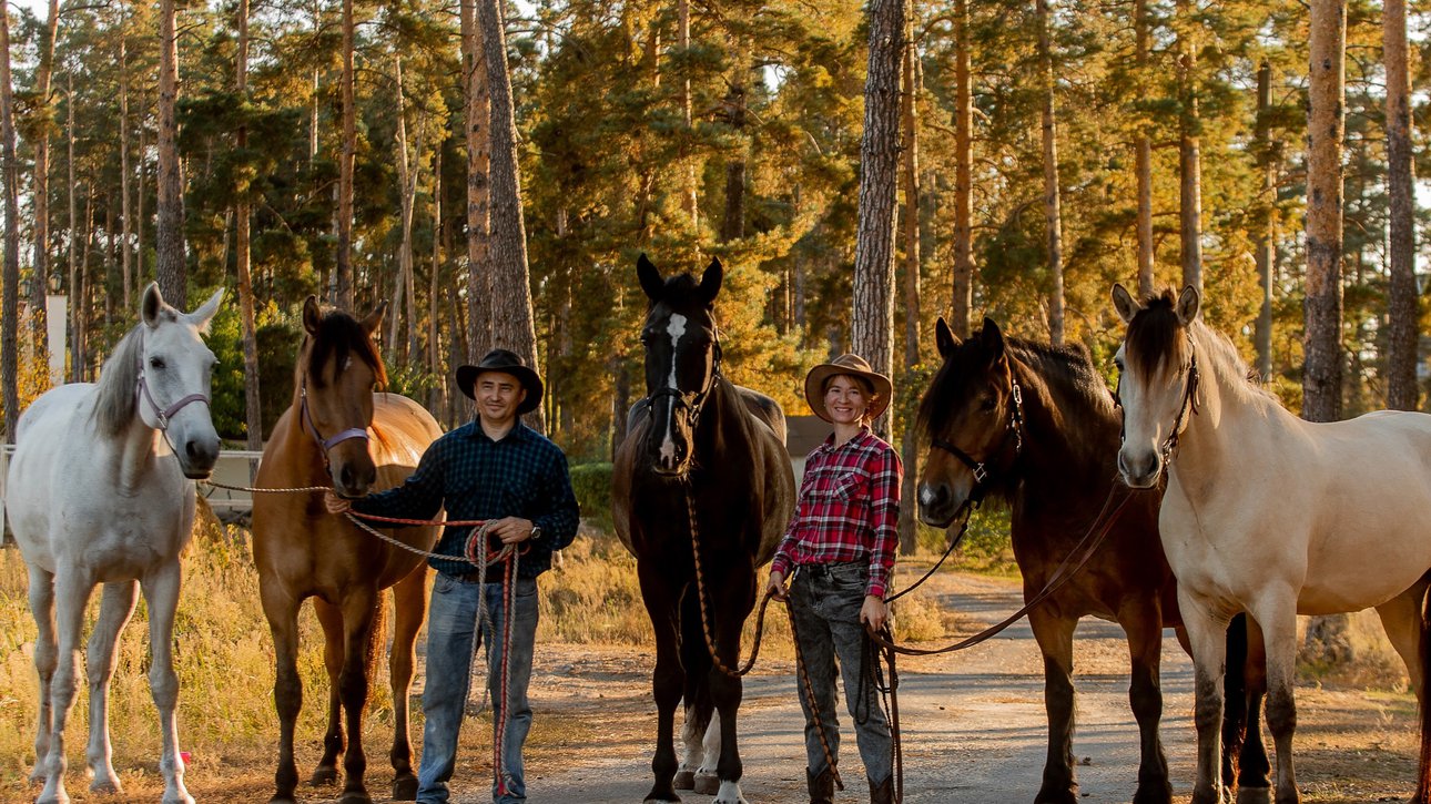 Романтическая конная прогулка на 1 час, Две лошади для романтической прогулки